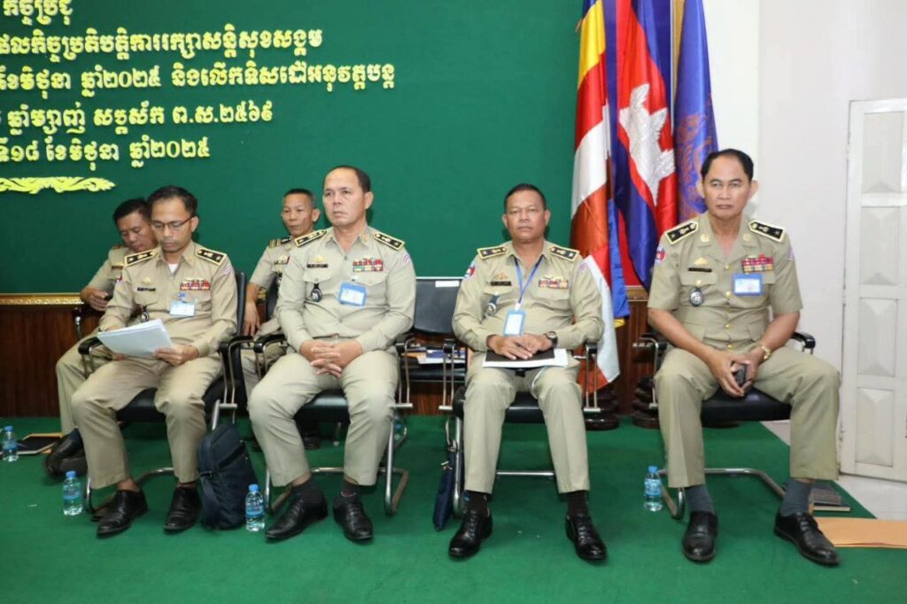 ក្នុងកិច្ចប្រជុំនេះដែរ លោកឧត្តមសេនីយ៍ស្នងការ ក៏បានផ្សព្វផ្សាយនូវ សភាពការណ៍ថ្មីៗ និងការត្រៀមលក្ខណៈសម្បត្តិគ្រប់គ្រាន់ ក្នុងកិច្ចការពារ រក្សាសុវត្ថិភាព និងសន្តិសុខសង្គមជាតិ ។ ជាមួយគ្នានេះ ត្រូវបន្ដពង្រឹងវិធានការ បង្ការទប់ស្កាត់គ្រប់សកម្មភាពបទល្មើស និងក្មេងទំនើង ព្រមទាំងបន្ដបំផុសការចូលរួម អនុវត្តគោលនយោបាយភូមិ-ឃុំ/សង្កាត់ មានសុវត្ថិភាព ឱ្យបានផុលផុសនៅគ្រប់មូលដ្ឋាន ។