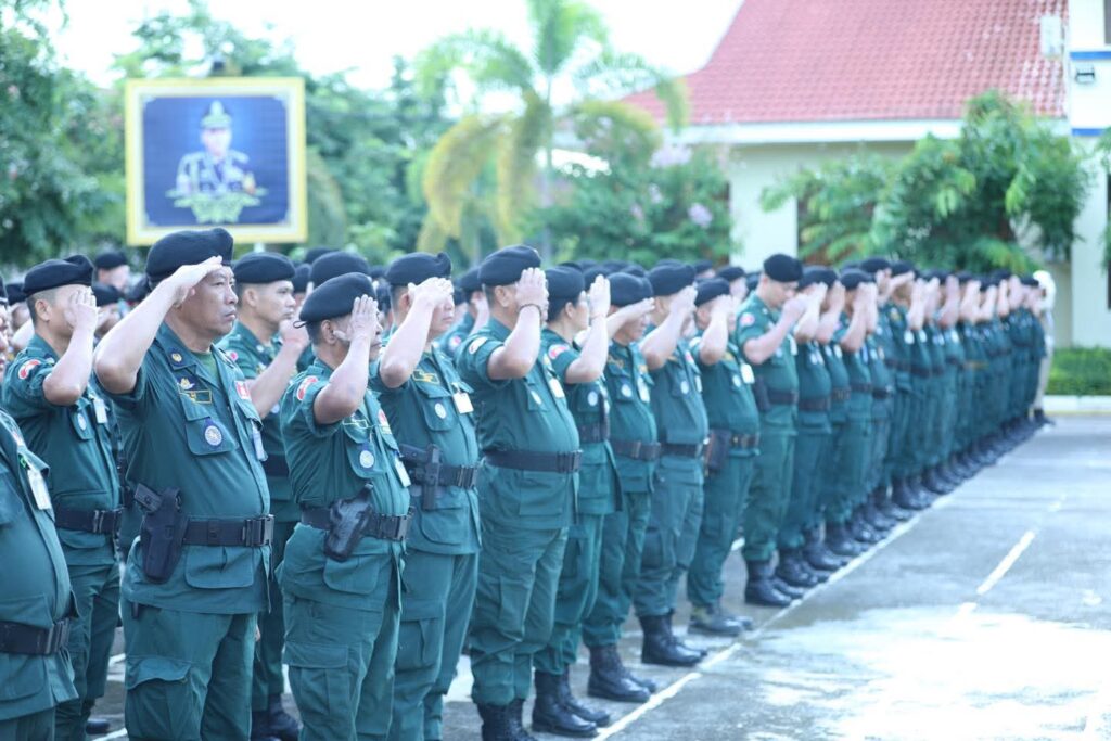 បន្ទាយមានជ័យ: នៅព្រឹកថ្ងៃចន្ទ ១៣រោច ខែជេស្ឋ ឆ្នាំម្សាញ់ សប្តស័ក ពុទ្ធសករាជ ២៥៦៩ ត្រូវនឹងថ្ងៃទី២៣ ខែមិថុនា ឆ្នាំ២០២៥ លោកឧត្តមសេនីយ៍ទោ សិទ្ធិ ឡោះ ស្នងការ នៃស្នងការដ្ឋាននគរបាលខេត្តបន្ទាយមានជ័យ បានដឹកនាំកម្លាំងនគរបាលទូទាំងខេត្ត គោរពទង់ជាតិ នៃព្រះរាជាណាចក្រកម្ពុជា ។