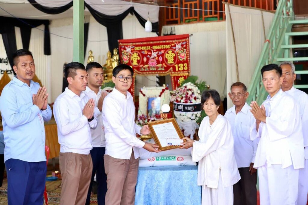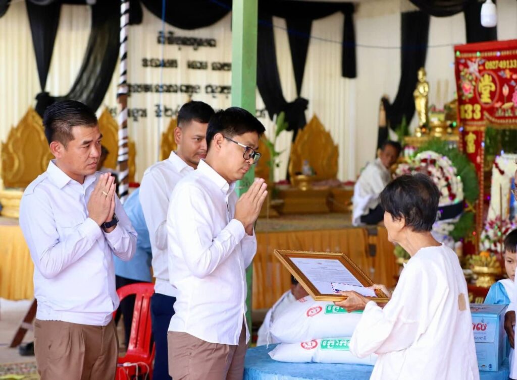 ខេត្តកណ្តាល:នៅរសៀលថ្ងៃទី២៥ ខែមិថុនា ឆ្នាំ២០២៥ លោក ចេង ឌីណា អភិបាល នៃគណៈអភិបាលស្រុកខ្សាច់កណ្ដាល និងសហការី ចូលរួមគោរពវិញ្ញាណក្ខន្ធសពលោក ឆោម ឆាយ អតីតមេឃុំរកាជន្លឹង ដែលបានទទួលមរណភាព ក្នុងជន្មាយុ ៧៨ឆ្នាំ ដោយជរាពាធ ស្ថិតនៅឃុំរកាជន្លឹង ស្រុកខ្សាច់កណ្តាល ខេត្តកណ្ដាល ។