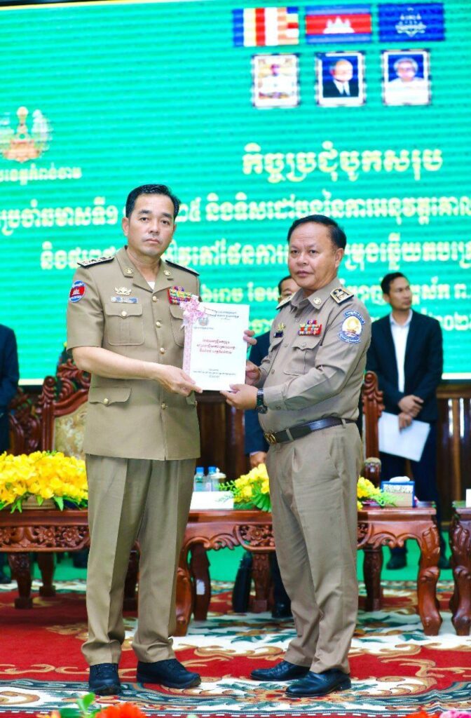 ថ្លែងក្នុងឱកាសនោះ ឯកឧត្តម អ៊ុន ចាន់ដា អភិបាលខេត្ត បានសម្ដែងការកោតសរសើរ ចំពោះកិច្ចខិតខំប្រឹងប្រែង និងការលះបង់យ៉ាងធំធេង ក្នុងការបំពេញភារកិច្ចរបស់ថ្នាក់ដឹកយើង ដែលបានរួមគ្នាជាមួយអាជ្ញាធរមូលដ្ឋាន និងកងកម្លាំងប្រដាប់អាវុធទាំងអស់ ដោយធានាបាននូវប្រសិទ្ធភាពការងារ ទទួលបានលទ្ធផលល្អប្រសើរ ក្នុងរយៈពេល ៦ ខែកន្លងមកនេះ ដែលមានសកម្មភាពជាច្រើន យើងទទួលបានជោគជ័យ ដោយគិតផ្ដើមចេញពីពេលពិធីបុណ្យឆ្លងឆ្នាំសាកល រហូតដល់បុណ្យចូលឆ្នាំថ្មីប្រពៃណីជាតិខ្មែរ រួមទាំងការរក្សាបាននូវសន្តិសុខសណ្ដាប់ធ្នាប់ល្អ ក្នុងពិធីបុណ្យធំៗជាបន្តបន្ទាប់ ជាពិសេសគឺបានទទួលការផ្ដល់ទំនុកចិត្តពីប្រជាពលរដ្ឋ មកលើអាជ្ញាធរ និងសមត្ថកិច្ចយើង ក្នុងការរក្សាបាន នូវសន្តិសុខសណ្ដាប់ធ្នាប់ល្អ នៅក្នុងសហគមន៍។