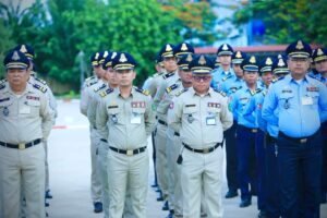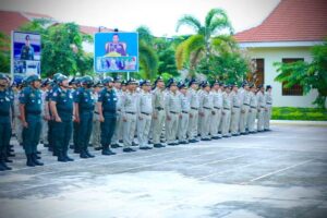 បន្ទាយមានជ័យ: នៅព្រឹកថ្ងៃចន្ទ ១០ រោច ខែជេស្ឋ ឆ្នាំរោង ឆស័ក ពុទ្ធសករាជ ២៥៦៨ ត្រូវនឹងថ្ងៃទី១ ខែកក្កដា ឆ្នាំ២០២៤លោកឧត្តមសេនីយ៍ទោ សិទ្ធិ ឡោះ ស្នងការនៃស្នងការដ្ឋាននគរបាលខេត្តបន្ទាយមានជ័យ បានអញ្ជើញដឹកនាំ កម្លាំងនគរបាលទូទាំងខេត្ត គោរពទង់ជាតិ នៃព្រះរាជាណាចក្រកម្ពុជា ។