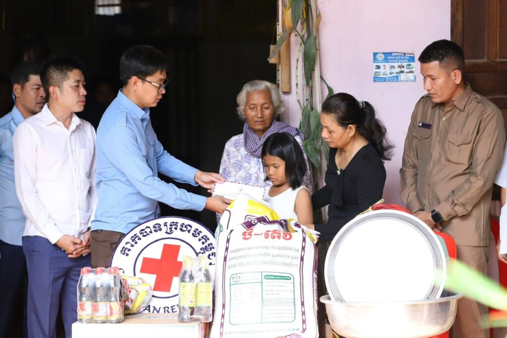 ស្រុកខ្សាច់កណ្ដាល: រសៀលថ្ងៃទី១៨ ខែសីហា ឆ្នាំ២០២៥លោក ចេង ឌីណា អភិបាល នៃគណៈអភិបាលស្រុកខ្សាចកណ្តាល បានដឹកនាំសហការី ចុះសួរសុខទុក្ខ កូនៗ ចំនួន៤នាក់ របស់ គ្រួសារវិរកងទ័ពជួរមុខឈរ ជើងនៅប្រាសាទតាក្របី ឈ្មោះ ស្រ៊ី កុសល ប្រពន្ធឈ្មោះ ព្រិល សុផាន ធ្វើការរោងចក្រនៅភ្នំពេញ ដែលរស់នៅជាមួយម្តាយមីង ក្នុងភូមិបឹងក្រចាប់ត្បូង ឃុំព្រែកតាមាក់ ស្រុកខ្សាច់កណ្ដាល ខេត្តកណ្ដាល និងបានឧបត្ថម្ភ អង្ករ ៥០គីឡូ ទឹកត្រី១យួរ ទឹកស៊ីអ៉ីវ ១យួរ ត្រីខ ១យួរ មី១កេស និងថវិកា ២០ម៉ឺនរៀល។