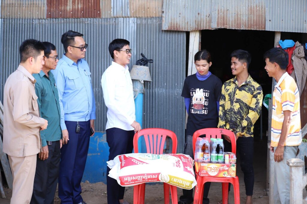 ខេត្តកណ្តាល:រសៀលថ្ងៃទី២០ ខែសីហា ឆ្នាំ២០២៥លោកចេង ឌីណា អភិបាលនៃគណៈស្រុកខ្សាច់កណ្តាលរួមជាមួយលោកមេឃុំពុកឫស្សី បានចុះសួរសុខទុក្ខពលករសំណាកស្រុកត្រឡប់មកពីប្រទេសថៃ និងជនភៀសសឹក ចំនួន ០៤គ្រួសារ នៅឃុំពុកឫស្សី ស្រុកខ្សាច់កណ្ដាល ព្រមទាំងនាំយកអំណោយរបស់ឯកឧត្តមបណ្ឌិត កៅ ថាច ប្រតិភូរាជរដ្ឋាភិបាល អនុប្រធានក្រុមការងាររាជរដ្ឋាភិបាលចុះមូលដ្ឋានស្រុក ទទួលបន្ទុកចលនាយុវជន និងជាអគ្គនាយក នៃធនាគារអភិវឌ្ឍជនបទ និងកសិកម្ម ដោយជូនក្នុងមួយគ្រួសារ ទទួលបាន អង្ករ មួយបេ(៥០ គីឡូក្រាម) ទឹកសុីអុីវ មួយយួរ ទឹកត្រី មួយយួរ ត្រីខ មួយយួរ និងមី មួយកេស ផងដែរ។