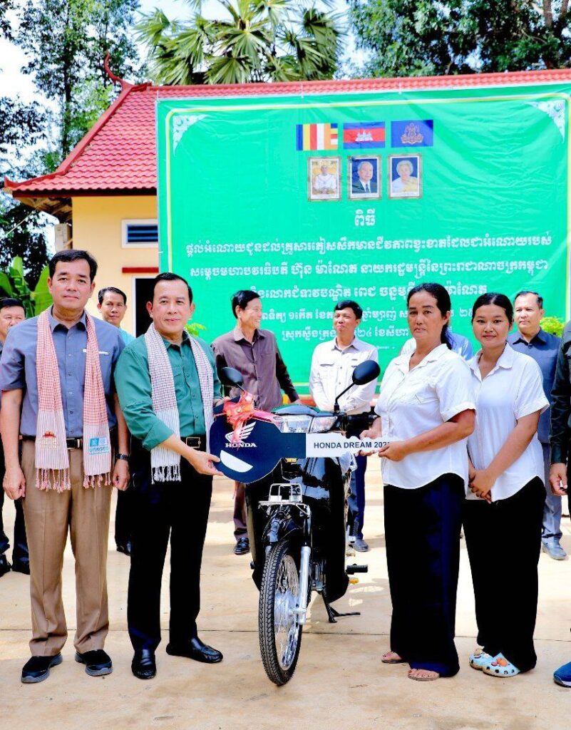 (កំពង់ចាម): អភិបាលនៃគណៈអភិបាលខេត្តកំពង់ចាម ឯកឧត្តម អ៊ុន ចាន់ដា នាព្រឹកថ្ងៃទី២៤ ខែសីហា ឆ្នាំ២០២៥នេះ បានអញ្ជើញរួមដំណើរជាមួយ ឯកឧត្តម ហួត ហាក់ ររដ្ឋមន្ត្រីក្រសួងទេសចរណ៍, អនុប្រធានក្រុមការងារចុះ មូលដ្ឋានខេត្តកំពង់ចាម និងជាប្រធានក្រុមការងារចុះមូលដ្ឋានស្រុកស្ទឹងត្រង់ បានអញ្ជើញនាំយកអំណោយដ៏ថ្លៃថ្លារបស់ សម្តេចមហាបវរធិបតី ហ៊ុន ម៉ាណែត នាយករដ្ឋមន្ត្រីនៃព្រះរាជាណាចក្រកម្ពុជា និង លោកជំទាវបណ្ឌិត ពេជ ចន្ទមុន្នី ហ៊ុន ម៉ាណែត ចែកជូនដល់ប្រជាពលរដ្ឋភៀសសឹក និងបងប្អូនពលករចំនួន ៦៣២គ្រួសារ នៅស្រុកស្ទឹងត្រង់ និងស្រុកចំការលើ។