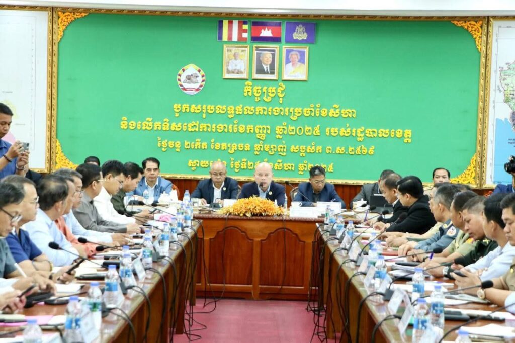 ខេត្តស្វាយរៀង:នាព្រឹកថ្ងៃទី២៥ ខែសីហា ឆ្នាំ២០២៥ លោក លឹម សៀងហេង អភិបាល នៃគណៈអភិបាលក្រុងបាវិត បានអញ្ជើញចូលរួមកិច្ចប្រជុំបូកសរុបលទ្ធផលការងារប្រចាំខែសីហា និងលើកទិសដៅការងារខែកញ្ញា ឆ្នាំ២០២៥ របស់រដ្ឋបាលខេត្តស្វាយរៀង ក្រោមអធិបតីភាពឯកឧត្តម ប៉េង ពោធិ៍សា អភិបាល នៃគណៈអភិបាលខេត្តស្វាយរៀង។ កិច្ចប្រជុំនេះមានការអញ្ជើញចូលរួមមានលោក លោកស្រី អភិបាលរងខេត្ត ប្រធានតំណាងសាលាដំបូងខេត្ត តំណាងព្រះរាជអាជ្ញាខេត្ត កងកម្លាំងប្រដាប់អាវុធក្នុងខេត្ត ប្រធានមន្ទីរ អង្គភាពពាក់ព័ន្ធក្នុងខេត្ត និងអភិបាលក្រុង ស្រុកទាំង០៨ ក្នុងខេត្តស្វាយរៀង។