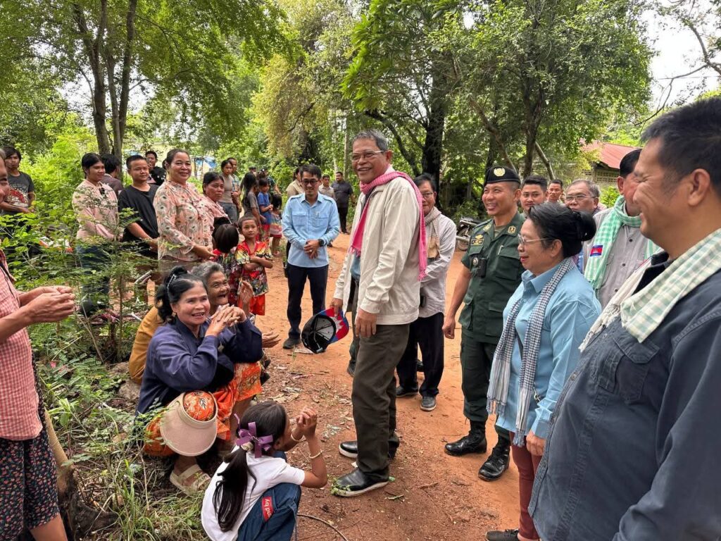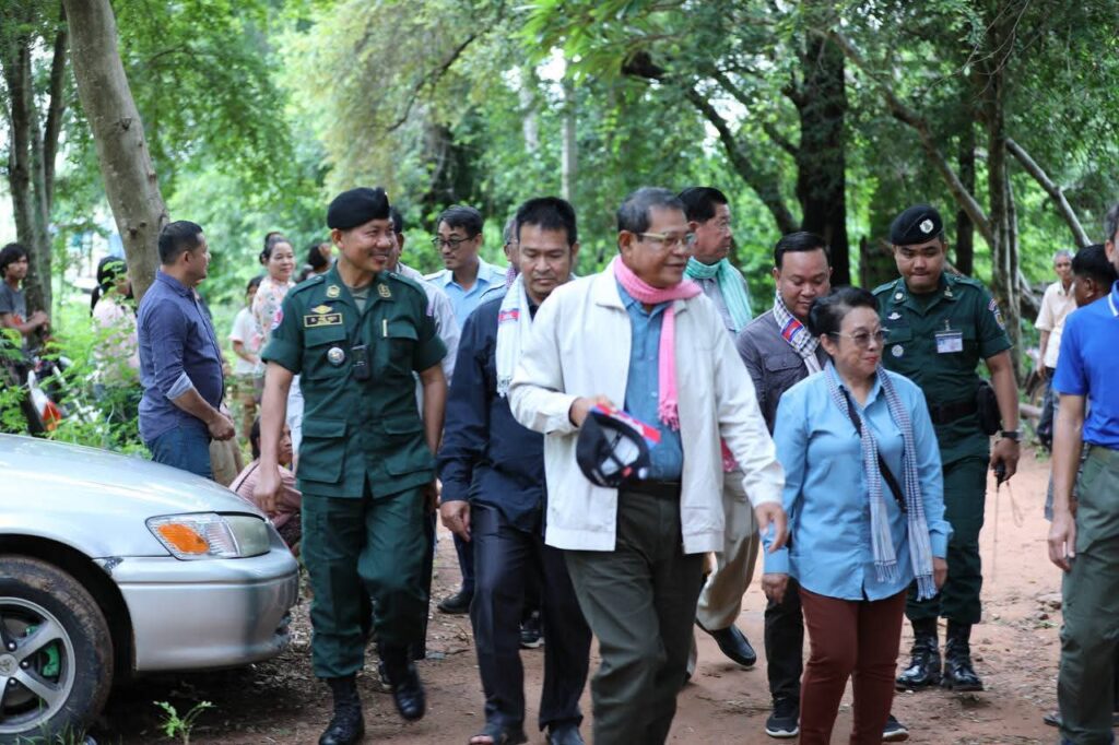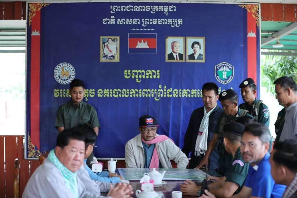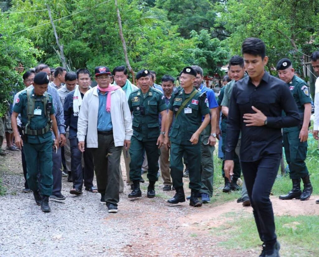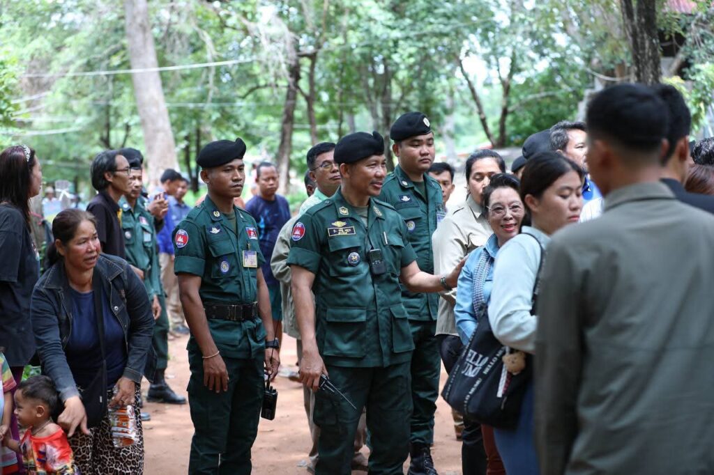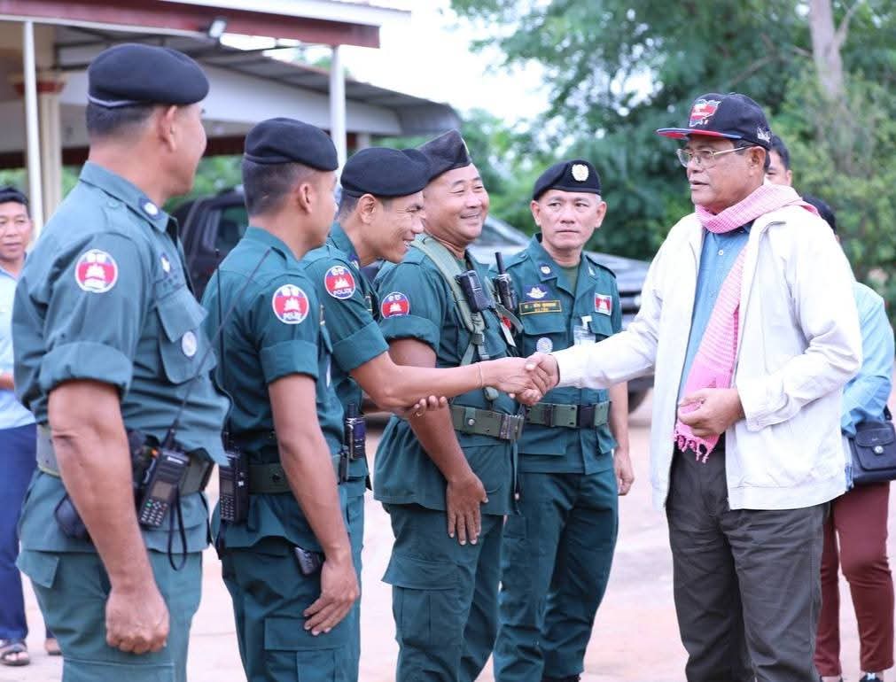 បន្ទាយមានជ័យ: ទៅព្រឹកថ្ងៃទី២៧ខែសីហាឆ្នាំ២០២៥លោកឧត្ដមសេនីយ៍ទោ សិទ្ធិ ឡោះ ស្នងការនៃស្នងការដ្ឋាននគរបាលខេត្តបន្ទាយមានជ័យ បានអញ្ជើញអមដំណើរ និងដឹកនាំកម្លាំងនគរបាលក្រោមឱវាទ ចុះការពារសន្តិសុខសុវត្ថិភាព ជូនឯកឧត្ដម កែ គឹមយ៉ាន តំណាងរាស្ត្រមណ្ឌលខេត្តបន្ទាយមានជ័យ និងជាឧត្តមប្រឹក្សាផ្ទាល់ព្រះមហាក្សត្រនៃព្រះរាជាណាចក្រកម្ពុជា បានដឹកនាំក្រុមការងារនិងអាជ្ញាធរដែនដី ចុះពិនិត្យស្ថានភាពព្រំដែនកម្ពុជា-ថៃ និងសួរសុខទុក្ខ កងកម្លាំងនគរបាលការពារព្រំដែនគោកលេខ៨០៧ អាជ្ញាធរមូលដ្ឋាន និងប្រជាពលរដ្ឋនៅស្រុកថ្មពួក។