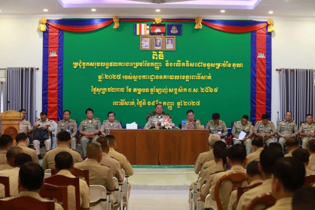 ពោធិ៍សាត់៖ នៅព្រឹកថ្ងៃទី១៩ ខែកញ្ញា ឆ្នាំ២០២៥ លោកឧត្តមសេនីយ៍ទោ ស ថេង ស្នងការនគរបាលខេត្តពោធិ៍សាត់ បានដឹកនាំកិច្ចប្រជុំបូកសរុបលទ្ធផលការងារប្រចាំខែកញ្ញា និងលើកទិសដៅអនុវត្តបន្ត ដោយមានការអញ្ជេីញចូលរួមពីលោកស្នងការរង ផែនការងារជំនាញ និងលោកអធិការ អធិការរងនគរបាលស្រុក-ក្រុងទាំង៧ លោក លោកស្រី នាយ នាយរងការិយាល័យជំនាញនិងនាយប៉ុស្តិ៍នគរបាលរដ្ឋបាលទាំង៤៩ឃុំ សង្កាត់ ។