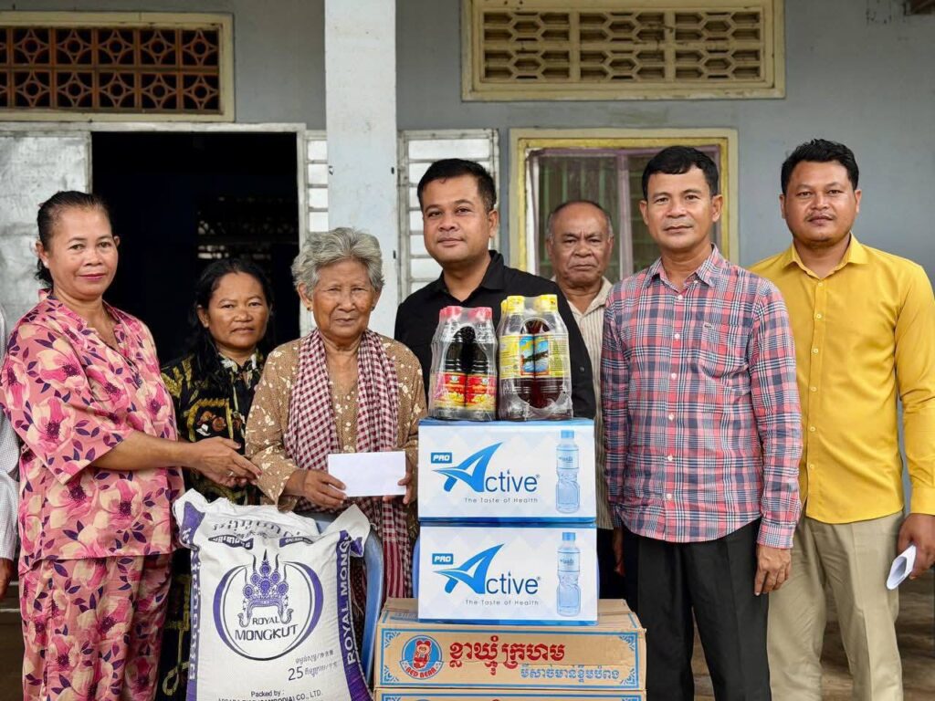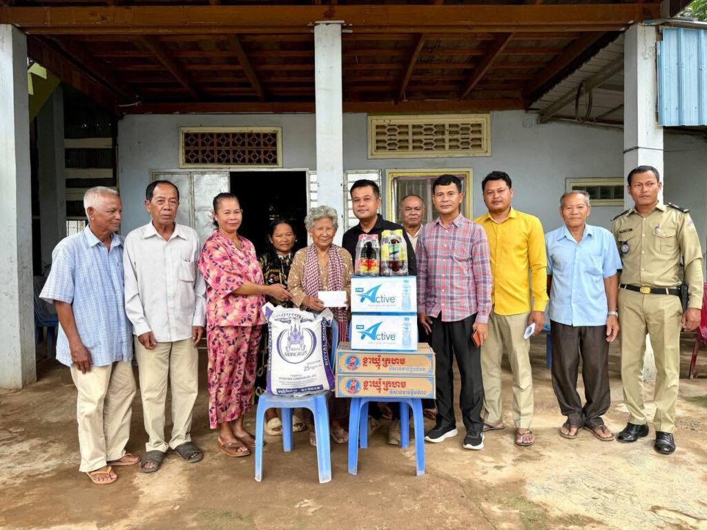ទឹកសុទ្ធ ២កេះ និងថវិកា ១០០.០០០រៀល។