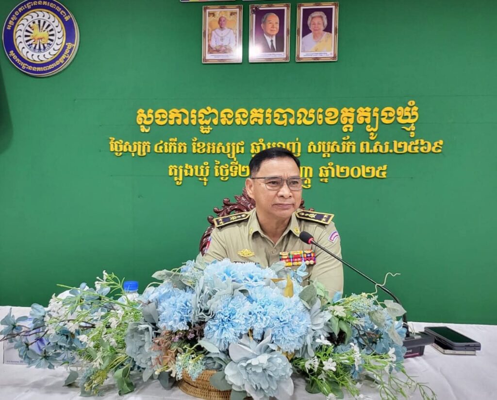 ខេត្តត្បូងឃ្មុំ៖ នៅរសៀលថ្ងៃសុក្រ ទី២៦ ខែកញ្ញា ឆ្នាំ២០២៥ ដោយអនុវត្តតាមបទបញ្ជារបស់ ឯកឧត្តម នាយឧត្តមសេនីយ៍ ស ថេត អគ្គស្នងការនគរបាលជាតិ នៅថ្ងៃសុក្រ ទី២៦ ខែកញ្ញា ឆ្នាំ២០២៥ នៅសាលប្រជុំសេនាធិការ នៃស្នងការដ្ឋាន លោកឧត្តមសេនីយ៍ទោ ចិន នី ស្នងការ នៃ ស្នងការដ្ឋាននគរបាលខេត្តត្បូងឃ្មុំ បានអញ្ជើញជាអធិបតីដ៏ខ្ពង់ខ្ពស់ដឹកនាំ ពិធីប្រជុំបូកសរុបសភាពការណ៍ លទ្ធផលកិច្ចប្រតិបត្តិការ ប្រចាំខែកញ្ញា និងដកបទពិសោធន៍ ពិធីបុណ្យកាន់បិណ្ឌ ភ្ជុំបិណ្ឌ និងទិសដៅបន្ត របស់ស្នងការដ្ឋាននគរបាលខេត្តត្បូងឃ្មុំ ។