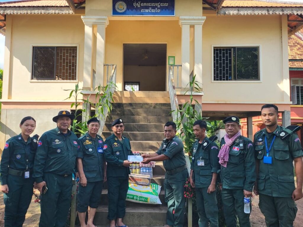 នៅក្នុងឱកាសនោះដែរ លោកឧត្តមសេនីយ៍ទោ ស្នងការ បានពាំនាំនូវប្រសាសន៍ផ្ដាំផ្ញើសាកសួរសុខទុក្ខ និងនាំយកនូវ អំណោយ ដ៏ថ្លៃថ្លា ជាគ្រឿងឧបភោគបរិភោគ និងថវិកា រួមមាន៖ អង្ករចំនួន ៥០គីឡូក្រា ថវិកា ចំនួន ២០០,០០០រៀន មីចំនួន ០១កេស ត្រីខកំប៉ុងចំនួន ០១យួរ ទឹកត្រីចំនួន ០១យួរ ទឹកស៊ីអ៊ីវចំនួនម ០១យួរ ប្រេងឆាចំនួន ០១ដប ប៊ីចេងចំនួន ០១កញ្ចប់ អំបិលចំនួន ០១កញ្ចប់ និង ស្កចំនួន ០១កញ្ចប់ ផ្ដល់ជូនដល់ ប៉ុស្តិ៍នគរបាលរដ្ឋបាល ក្នុងមួយប៉ុស្តិ៍ សរុប ០៣ប៉ុស្តិ៍ ។