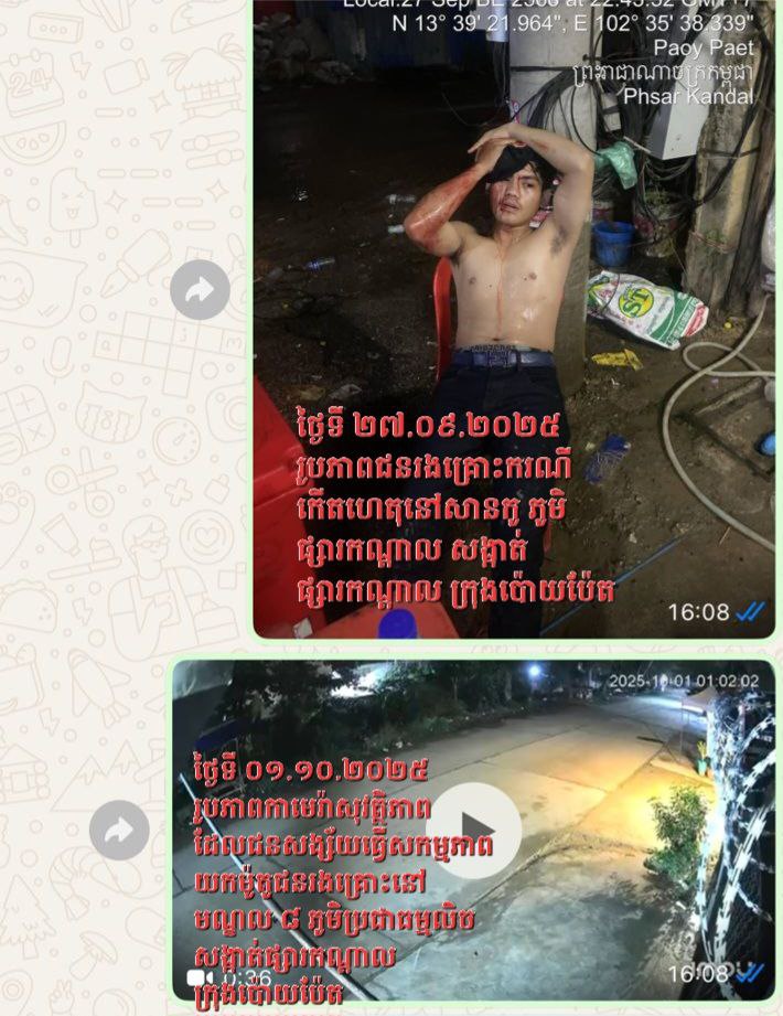 លើកទី៣: នៅថ្ងៃទី១ ខែតុលា ឆ្នាំ២០២៥ វេលាម៉ោង១យប់ នៅចំនុចមណ្ឌល៨ ស្ថិតក្នុងភូមិប្រជាធម្មកើត សង្កាត់អូរឬស្សី ក្រុងប៉ោយប៉ែត ខេត្តបន្ទាយមានជ័យ បង្កឡើងដោយជនសង្ស័យចំនួន០៤នាក់ជាក្មេងទំនើង ជិះម៉ូតូ២គ្រឿង ដាវមួយដើម បម្រុងកាប់លើជនរងគ្រោះ ហើយជនរងគ្រោះបានរត់ចោលម៉ូតូ ។ ម៉ូតូរបស់ជនរងគ្រោះ ម៉ាកហុងដាឌ្រីម ស៊េរីឆ្នាំ ២០២៥ ពណ៌ខ្មៅ ផ្លាកលេខ បន្ទាយមានជ័យ1AD-9744 លេតួND125N0260939 ។