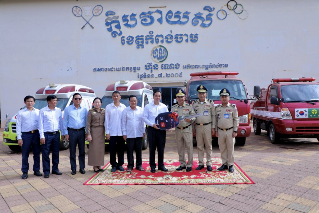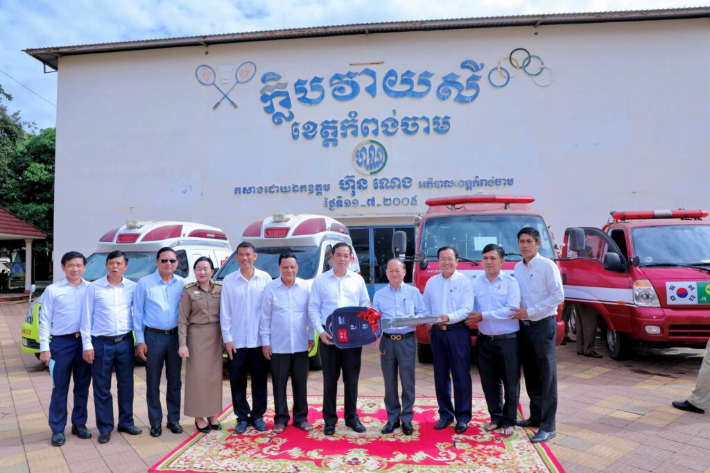 (កំពង់ចាម): ឯកឧត្តម អ៊ុន ចាន់ដា អភិបាលនៃគណៈអភិបាលខេត្តកំពង់ចាម បានអញ្ជើញប្រគល់រថយន្តពន្លត់អគ្គីភ័យចំនួន ២គ្រឿង ជូនស្នងការដ្ឋាននគរបាលខេត្តកំពង់ចាម និងរថយន្តសង្គ្រោះបន្ទាន់ចំនួន ២គ្រឿង ប្រគល់ជូនមន្ទីរសុខាភិបាលនៃរដ្ឋបាលខេត្តកំពង់ចាម ពិធីប្រគល់ និងទទួលនេះ ត្រូវបានធ្វើឡើងនាព្រឹកថ្ងៃទី១០ ខែតុលា ឆ្នាំ២០២៥ នៅសាលាខេត្ត ក្រោមវត្តមាន ឯកឧត្តម ខ្លូត ផន ប្រធានក្រុមប្រឹក្សាខេត្តកំពង់ចាម ។