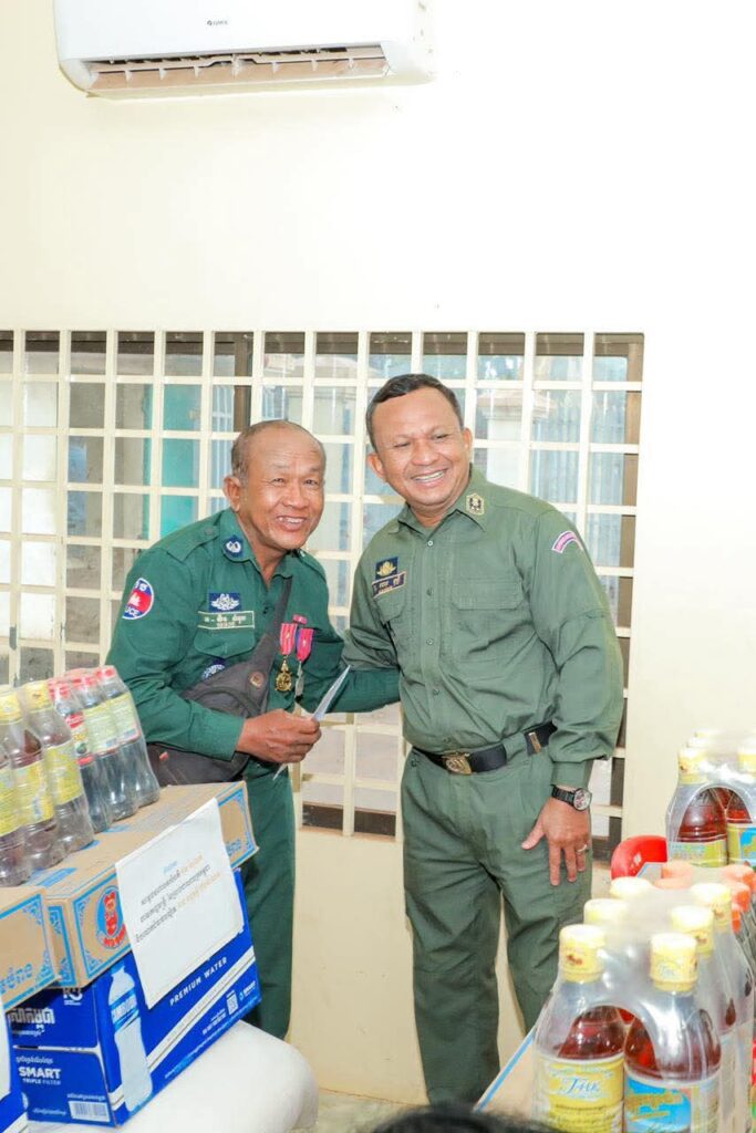 ព្រមទាំងបានឧបត្ថម្ភនូវថវិកា គ្រឿងឧបភោគបរិភោគ មួយចំនួន ដល់កងកម្លាំងនគរបាលជាតិ និងបងប្អូននិវត្តន៍ជន ដែលជួបការលំបាក ទាំង១១នាក់ ដែលជាអំណោយដ៏ថ្លៃថ្លារបស់សម្ដេចបវរធិបតី និងលោកជំទាវបណ្ឌិត ផងដែរ ។