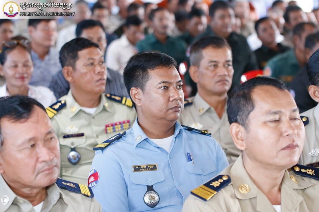 ខេត្តកណ្តាល:នៅព្រឹកថ្ងៃព្រហស្បតិ៍ ៩រោច ខែអស្សុជ ឆ្នាំម្សាញ់ សប្ដស័ក ព.ស.២៥៦៩ ត្រូវនឹងថ្ងៃទី១៦ ខែតុលា ឆ្នាំ២០២៥រដ្ឋបាលក្រុងអរិយក្សត្រ បានរៀបចំពិធីបើកវគ្គបណ្ដុះបណ្ដាល ស្ដីពីជំនាញចំនួន៦ ជូនប្រជាការពារ នៃអធិការដ្ឋាននគរបាលក្រុងអរិយក្សត្រ ក្រោមអធិបតីភាពលោក ចាន់ តារា អភិបាលក្រុង និងជាប្រធានគណៈបញ្ជាការឯកភាពរដ្ឋបាលក្រុងអរិយក្សត្រ លោកវរសេនីយ៍ទោ រស់ បាលីន អធិការនគរបាលក្រុងអរិយក្សត្រ ជំនាញដែលត្រូវបំប៉ន មាន