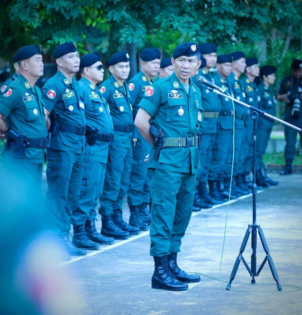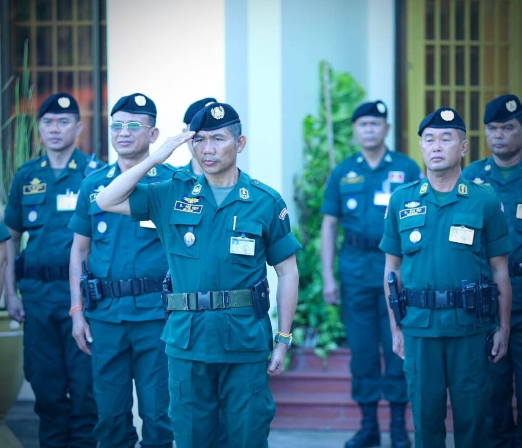 ខេត្តបន្ទាយមានជ័យ: នៅព្រឹកថ្ងៃចន្ទ ៥រោច ខែកត្តិក ឆ្នាំម្សាញ់ សប្តស័ក ពុទ្ធសករាជ ២៥៦៩ ត្រូវនឹងថ្ងៃទី១០ ខែវិច្ឆិកា ឆ្នាំ២០២៥ លោកឧត្តមសេនីយ៍ទោ សិទ្ធិ ឡោះ ស្នងការ នៃស្នងការដ្ឋាននគរបាលខេត្តបន្ទាយមានជ័យ បានដឹកនាំកម្លាំងនគរបាលទូទាំងខេត្ត គោរពទង់ជាតិ នៃព្រះរាជាណាចក្រកម្ពុជា។ពិធីនេះមានការអញ្ជើញចូលរួមពី លោក លោកស្រី ឧត្តមសេនីយ៍ វរសេនីយ៍ ស្នងការរង លោក-លោកស្រី នាយការិយាល័យជំនាញ និងមន្រ្តីនគរបាលចំណុះស្នងការដ្ឋាននគរបាលខេត្តបន្ទាយមានជ័យ ជាច្រើនរូប។លោកឧត្តមសេនីយ៍ទោស្នងការ ក៏បានក្រើនរំលឹក និងដាក់ចេញបទបញ្ជាដល់កងកម្លាំងនគរបាលគ្រប់ផ្នែកពាក់ព័ន្ធ ត្រូវបន្តយកចិត្តទុកដាក់ អនុវត្ត តួនាទី ភារកិច្ចឲ្យបានល្អ គោរពច្បាប់ គោរពវិន័យ, ពង្រឹងការប្រចាំការ ២៤ម៉ោង ការយាមល្បាត ,បន្តស្រាវជ្រាវបង្ការ បង្ក្រាប បទល្មើសគ្រប់ប្រភេទ ពិសេសបទល្មើសព្រហ្មទណ្ឌ និងក្មេងទំនើង ឲ្យមានប្រសិទ្ធភាព៕