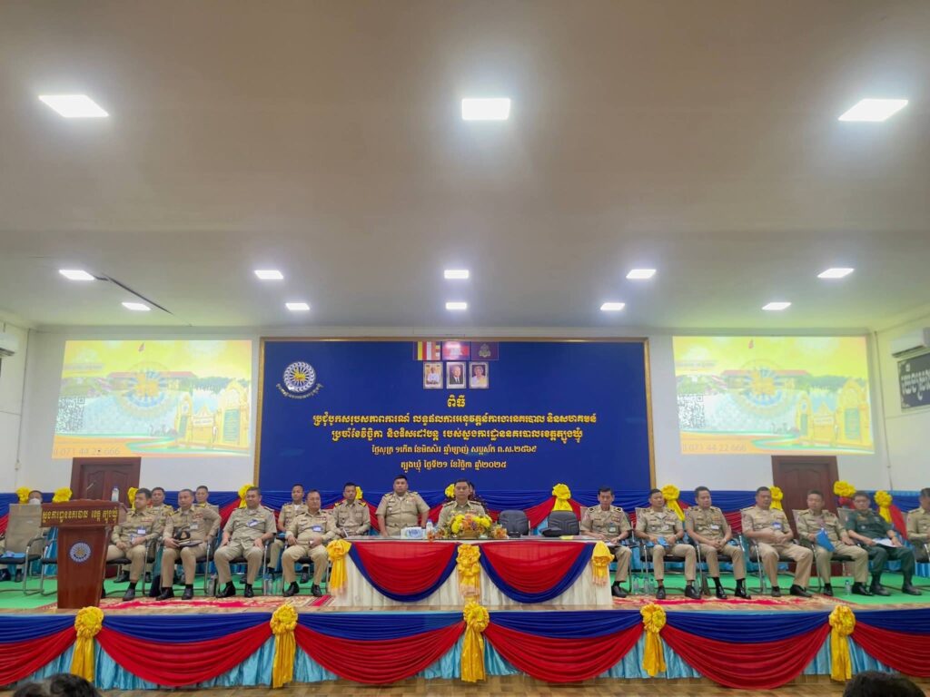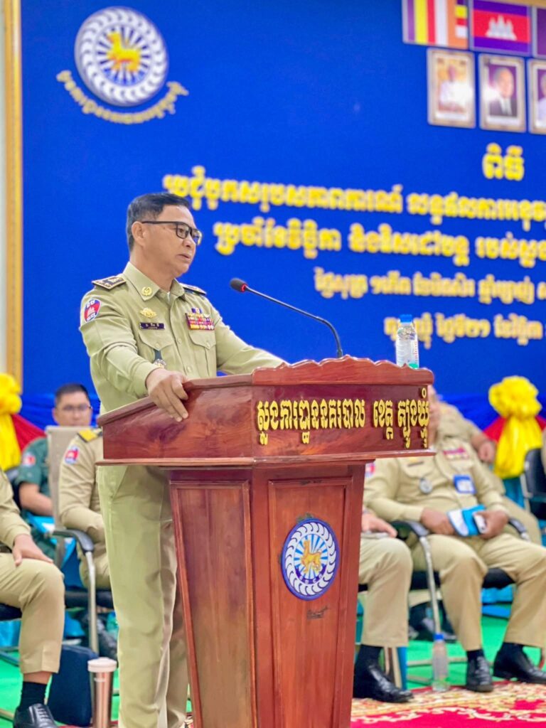 ត្បូងឃ្មុំ៖ នៅព្រឹកថ្ងៃសុក្រ ទី២១ ខែវិច្ឆិកា ឆ្នាំ២០២៥ ដោយអនុវត្តតាមបទបញ្ជារបស់ ឯកឧត្តម នាយឧត្តមសេនីយ៍ ស ថេត អគ្គស្នងការនគរបាលជាតិ នៅសាលប្រជុំ នៃស្នងការដ្ឋាន លោកឧត្តមសេនីយ៍ទោ ចិន នី ស្នងការ នៃ ស្នងការដ្ឋាននគរបាលខេត្តត្បូងឃ្មុំ បានអញ្ជើញជាអធិបតីដ៏ខ្ពង់ខ្ពស់ដឹកនាំ ពិធីប្រជុំបូកសរុបសភាពការណ៍ លទ្ធផលការអនុវត្តន៍ការងារនគរបាល និងសហគមន៍ប្រចាំខែវិច្ឆិកា និងទិសដៅបន្ត របស់ស្នងការដ្ឋាននគរបាលខេត្តត្បូងឃ្មុំ និងផ្សព្វផ្សាយសមាសភាពក្រុម ការងារ Hotline ជាមួយជនបរទេស និងក្រុមការងារប្រឆាំងការឆបោកតាមប្រព័ន្ធបច្ចេកវិទ្យា។