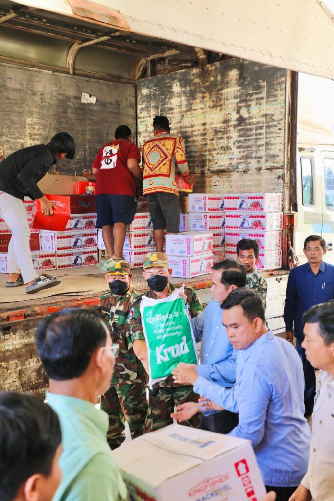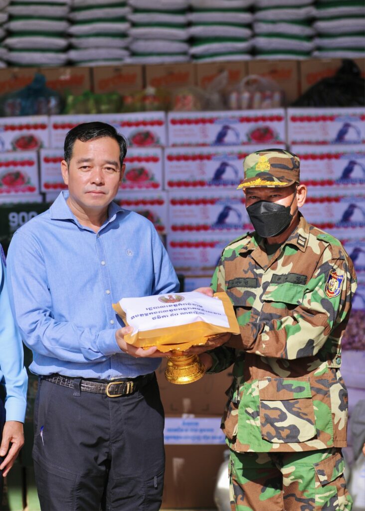 -ថវិកាសរុប ចំនួន ៥០.០០០.០០០រៀល ត្រីខកំប៉ុង ចំនួន ១៥០កេសធំ ខ្ទឹមសរ ចំនួន ២០០ គីឡូក្រាម អំបុកខ្មែរ និងសាច់ផាត់ ចំនួន ២.០០០កញ្ចប់ ស្មើនឹង ២.០០០គីឡូក្រាម ឆៃពៅ ចំនួន ២៥០ គីឡូក្រាម ត្រសក់ចាវ ចំនួន ២៥០គីឡូក្រាម ត្រីប្រឡាក់ ចំនួន២.០០០គីឡូក្រាម ប្រេងឆារ ចំនួន ១.៥០០ លីត្រ ស្ករសរ ចំនួន ២០០គីឡូក្រាម អំបិល ចំនួន ៥០០គីឡូក្រាម ប៊ីចេង ចំនួន១០០គីឡូក្រាម អង្ករចំនួន ១០តោន មី ចំនួន ៥០០កេស សូឡាចំនួន ៥០ឈុត ទឹកសុទ្ធចំនួន ៣០០កេស ភេសជ្ជៈ ចំនួន ២០០កេស ទឹកតី ចំនួន ១០០យូរ ទឹកស៊ីអីវ ចំនួន ១០០យួរ សៀងចំនួន ៧០យួរ