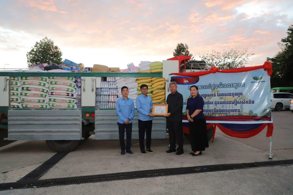 សូមបញ្ជាក់ផងដែរថា រដ្ឋបាលខេត្តកណ្ដាល បានបញ្ជូនសម្ភារៈដែលទទួលបានពីសប្បុរសជននានា បានចាត់បញ្ជូនដល់ជនភៀសសឹក និងវីរៈកងទ័ពជារៀងរាល់ថ្ងៃ។