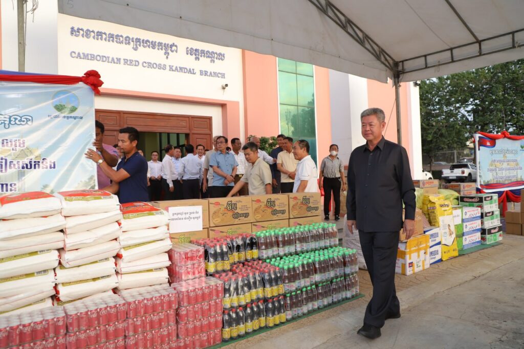 ខេត្តកណ្ដាល៖ រសៀលថ្ងៃទី២៤ ខែធ្នូ ឆ្នាំ២០២៥ ឯកឧត្ដម គួច ចំរើន អភិបាល នៃគណៈអភិបាលខេត្តកណ្ដាល អញ្ជើញទទួលអំណោយ ជាថវិកា គ្រឿងឧបភោគបរិភោគ និងសម្ភារៈមួយចំនួន ពីសប្បុរសជននានា ដើម្បីជូនដល់ជនភៀសសឹកត្រូវបានជម្លៀសខ្លួនមកកាន់មណ្ឌលសុវត្ថិភាពនានា នៅតាមបន្ទាត់ព្រំដែនកម្ពុជា-ថៃ និងជូនដល់វីរៈកងទ័ពជួរមុខ ដែលបាននឹងកំពុងខិតខំតស៊ូការពារបូរណភាពទឹកដី ប្រកបដោយភាពក្លាហាន មុះមុត ប្រឆាំងនឹងសត្រូវឈ្លានពានថៃ ដោយស្មារតីស្នេហាជាតិមាតុភូមិ។