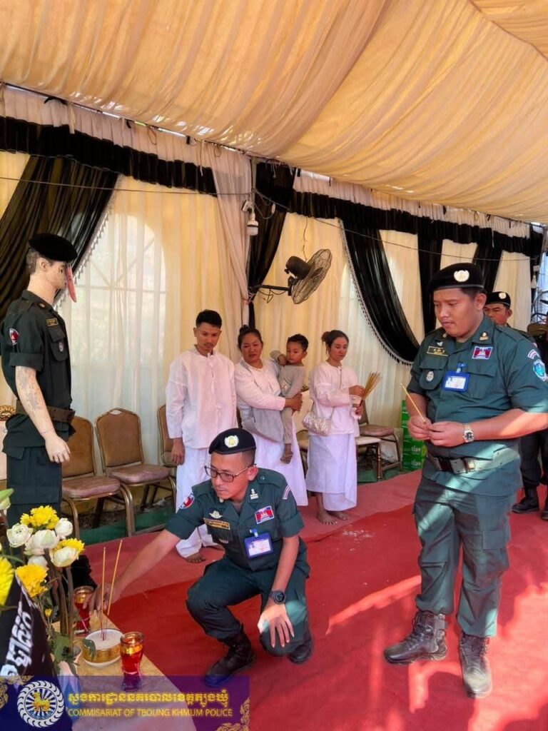 ខេត្តត្បូងឃ្មុំ ៖ ដោយអនុវត្តតាមអនុសាសន៍ដឹកនាំដ៏ខ្ពង់ខ្ពស់របស់ ឯកឧត្ដម នាយឧត្តមសេនីយ៍ ស ថេត អគ្គស្នងការនគរបាលជាតិ និងការចង្អុលដឹកនាំផ្ទាល់ពីលោកឧត្តមសេនីយ៍ទោ ចិន នី ស្នងការនគរបាលខេត្ត នៅថ្ងៃអង្គារ ទី២៧ ខែមករា ឆ្នាំ២០២៦ លោកវរសេនីយ៍ឯក ឆោ វណ្ណា ស្នងការរងទទួលជំនួយការដឹកនាំ វរសេនាតូចនគរបាលការពារព្រំដែនគោកលេខ ៦១៧ បានចូលរួមគោរពវិញ្ញាណក្ខន្ធ បំពាក់ឋានន្តរស័ក្តិថ្នាក់វរសេនីយ៍ត្រី ជាកិច្ចបច្ឆាមរណ: និងបាននាំយកថវិកាសមាគមមិត្តនគរបាលជាតិកម្ពុជា ចំនួន ៦,០០០,០០០ រៀល និងបច្ច័យចូលរួមបុណ្យសព ចំនួន ៣,៦៧០,០០០ រៀល ដែលបានមកពីការកៀរគររបស់លោកឧត្តមសេនីយ៍ស្នងការ ប្រគល់ជូនលោកស្រី ភួន សុភ័ក្រ្ត ត្រូវជាភរិយាសពលោកអនុសេនីយ៍ឯក សុឹម ប៊ុនទី នាយរងប៉ុស្ដិ៍នគរបាលការពារព្រំដែនបឹងជ្រោង នៃវរសេនាតូចនគរបាលការពារព្រំដែនគោកលេខ ៦១៧ ដែលបានទទួលមរណភាព កាលពីថ្ងៃទី២៦ ខែមករា ឆ្នាំ២០២៦ ដោយជំងឺគាំងបេះដូង នៅគេហដ្ឋានសពស្ថិតនៅភូមិដំណាក់ល្អិត ឃុំរការគយ ស្រុកកងមាស ខេត្តកំពង់ចាម ៕