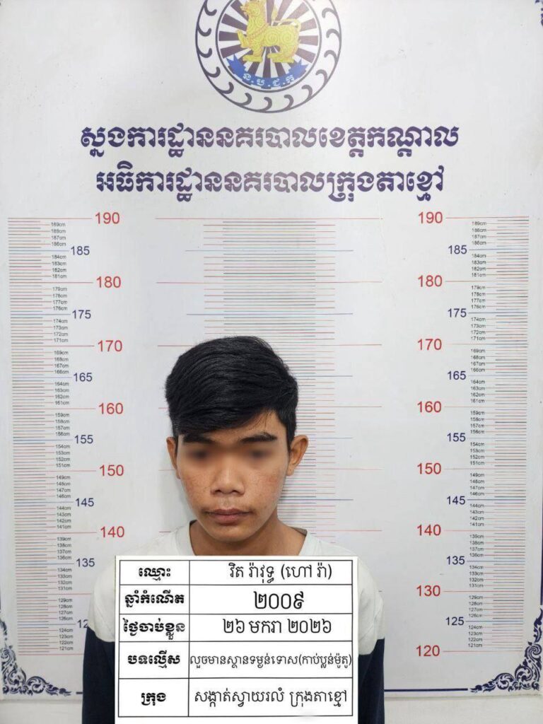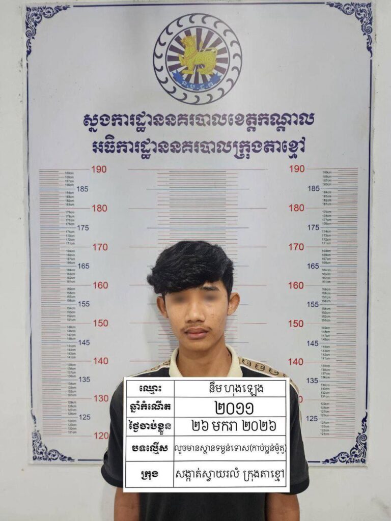 ដោយអនុវត្តតាមបទបញ្ជារបស់ លោកឧត្តមសេនីយ៍ទោ ឈឿន សុចិត្ត ស្នងការ នៃស្នងការដ្ឋាននគរបាលខេត្តកណ្តាល នៅថ្ងៃទី២៦ ខែមករា ឆ្នាំ២០២៦ កម្លាំងនគរបាលព្រហ្មទណ្ឌ និង ប៉ុស្តិ៍នគរបាលរដ្ឋបាលស្វាយរលំ ដឹកនាំបញ្ជាដោយលោកវរសេនីយ៍ឯក យី វណ្ណដា អធិការនគរបាលក្រុងតាខ្មៅ ស្រាវជ្រាវឈានដល់ការបង្ក្រាបចំណុចលើផ្លូវ២១ ភូមិលេខ១ក សង្កាត់ស្វាយរលំ ក្រុងតាខ្មៅ ខេត្តកណ្តាល ឃាត់ខ្លួនជនសង្ស័យចំនួន២នាក់ ១-ឈ្មោះ វិត រ៉ាវុទ្ធ ភេទប្រុស អាយុ១៧ឆ្នាំ ជនជាតិខ្មែរ រស់នៅភូមិសាមគ្គី សង្កាត់ឬស្សី ខណ្ឌឬស្សីកែវ ភ្នំពេញ មុខរបរ សិស្ស ២-ឈ្មោះ នឹម ហុងឡេង ភេទប្រុស អាយុ១៥ឆ្នាំ ជនជាតិខ្មែរ មុខរបរសិស្ស ទីលំនៅភូមិព្រៃស្វាយ ឃុំព្រៃស្វាយ ស្រុកបឹងខ្នារ ខេត្តពោធិ៍សាត់ ។