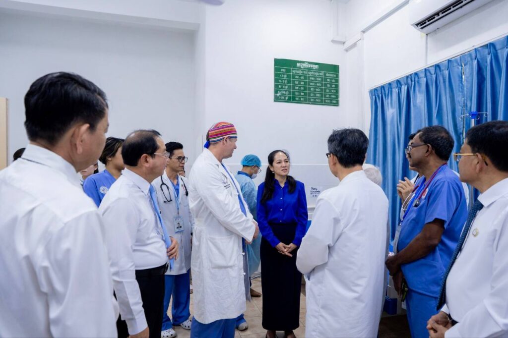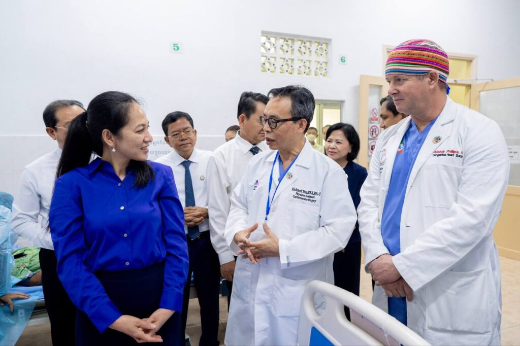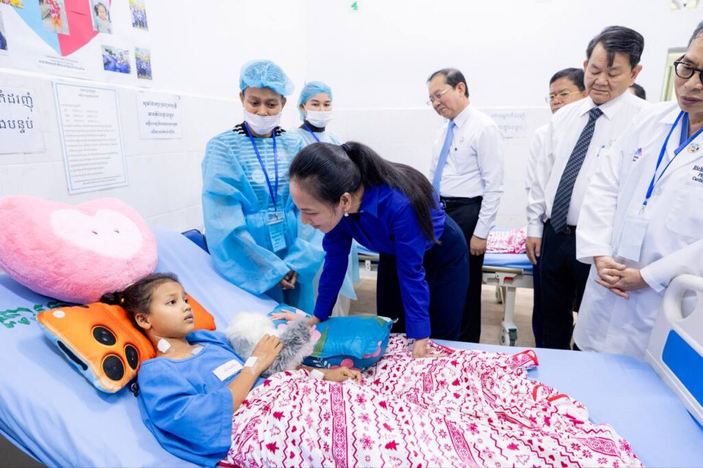 រាជធានីភ្នំពេញ :នៅព្រឹកថ្ងៃទី១២ ខែកុម្ភៈ ឆ្នាំ២០២៦លោកជំទាវបណ្ឌិត ពេជ ចន្ទមុន្នី ហ៊ុនម៉ាណែត បានអញ្ជើញមកមន្ទីរពេទ្យកុមារជាតិដើម្បីពិនិត្យវឌ្ឍនភាពគម្រោងវះកាត់បេះដូងកុមារ ដែលជាកិច្ចសហប្រតិបត្តិការរវាងមន្ទីរពេទ្យកុមារជាតិ និងសមាគមសុខាភិបាលខ្មែរនៅអាមេរិក (CHPAA) ។ គម្រោងដ៏វិសេសវិសាលនេះ ត្រូវបានបង្កើតឡើង និងអនុវត្តក្នុងគោលបំណងជួយព្យាបាលដល់កុមារទាំងឡាយដែលមានជំងឺបេះដូងពីកំណើត រួមទាំងជំងឺបេះដូងផ្សេងៗ តាមរយៈព្យាបាលវះកាត់ដោយមិនគិតថ្លៃ ដើម្បីផ្តល់មកវិញនូវសុខុមាលភាព និងជិវិតដ៏ត្រចះត្រចង់ ដល់កុមារកម្ពុជា។ គម្រោងនេះ ក៏ជួយបណ្តុះបណ្តាលបន្ថែមតាមរយៈការផ្លាស់ប្តូរបទពិសោធន៍គ្នាទៅវិញទៅមករវាងវេជ្ជបណ្ឌិតកម្ពុជា និងវេជ្ជបណ្ឌិតអាមេរិក ការជួយទ្រទ្រង់ផ្នែកឧបករណ៍បច្ចេកទេសវះកាត់ និងការជួយគាំទ្រផ្នែកស្មារតីគ្នាជាដើម។