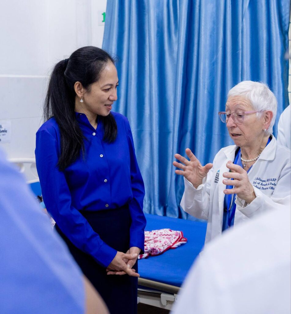 ឆ្លៀតក្នុងវេលានេះ លោកជំទាវបណ្ឌិត បានអញ្ជើញសួរសុខទុក្ខកុមារដែលកំពុងសម្រាកព្យាបាលជំងឺ ដោយ លោកជំទាវបណ្ឌិត បានភ្ជាប់មកជាមួយប្រសាសន៍សួរសុខទុក្ខ និងជូនពរដ៏ខ្ពង់ខ្ពស់របស់ សម្តេចអគ្គមហាសេនាបតីតេជោ ហ៊ុន សែន សម្តេចកិត្តិព្រឹទ្ធបណ្ឌិត ប៊ុន រ៉ានី ហ៊ុនសែន ព្រមទាំង សម្តេចមហាបវរធិបតី ហ៊ុន ម៉ាណែត ផងដែរ។ លោកជំទាវបណ្ឌិត ថែមទាំងបានជួបសំណេះសំណាលជាមួយក្រុមគ្រូពេទ្យ គិលានុបដ្ឋាក បុគ្គលិកមន្ទីរពេទ្យ រួមទាំងក្រុមគ្រូពេទ្យស្ម័គ្រចិត្តរបស់សមាគមសុខាភិបាលខ្មែរនៅអាមេរិក (CHPAA) ដែលកំពុងបម្រើការក្នុងគម្រោងនេះ។
