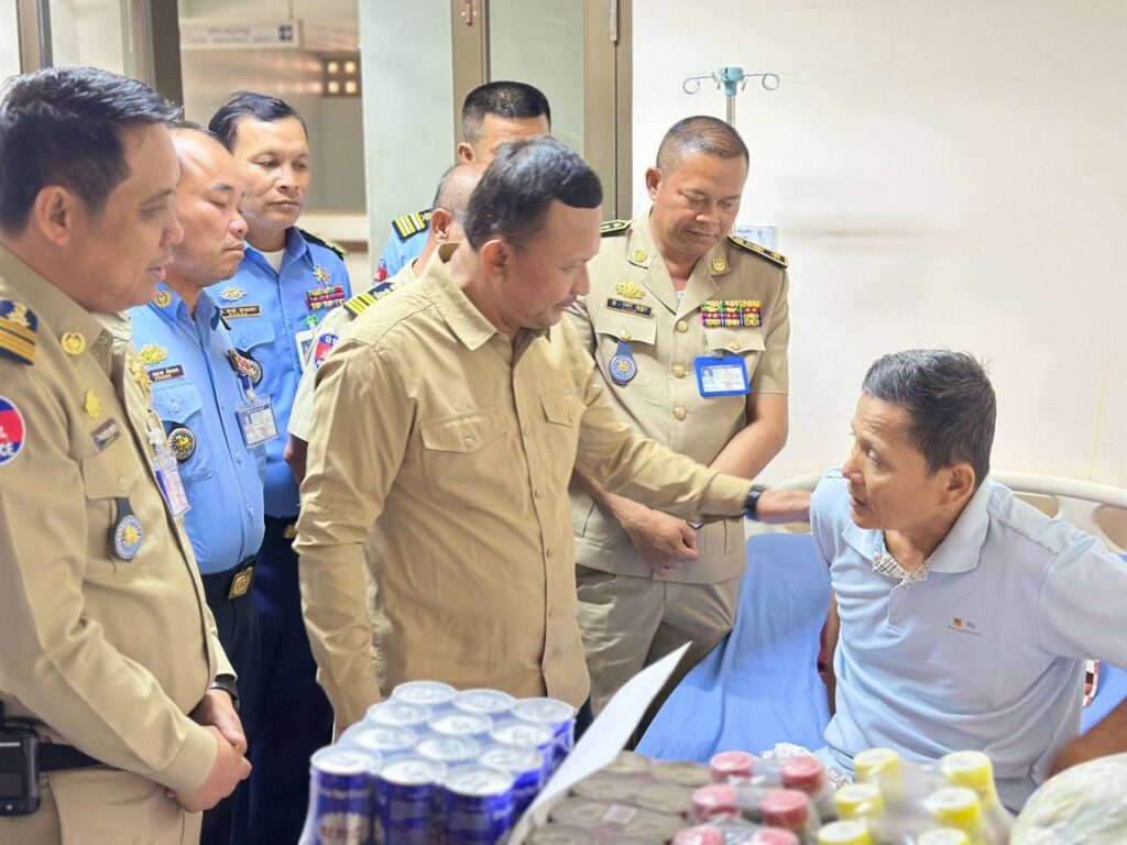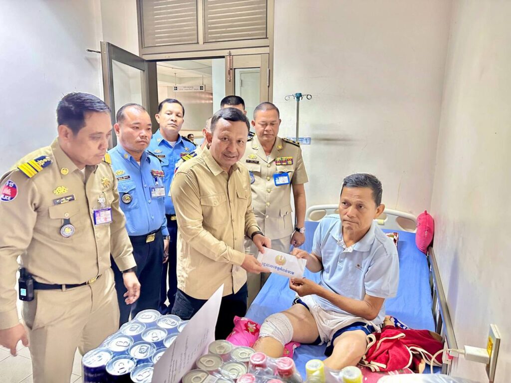 ស្ថិតក្នុងឱកាសនោះដែរ លោកឧត្ដមសេនីយ៍ទោស្នងការក៏បាននាំប្រសាសន៍ផ្ដាំផ្ដើសាកសួរសុខទុក្ខរបស់ ឯកឧត្តម នាយឧត្តមសេនីយ៍ ស ថេត អគ្គស្នងការនគរបាលជាតិ និងឯកឧត្តម អ៊ុន ចាន់ដា អភិបាល នៃគណៈអភិបាលខេត្តកំពង់ចាម ព្រមទាំងបានស្នើឱ្យគ្រូពេទ្យឯកទេស បន្ដជួយព្យាបាលមុខរបួសឱ្យបានឆាប់ជាសះស្បើយ និងបានរៀបចំដោះស្រាយលើការចំណាយក្នុងការសម្រាកព្យាបាលជំងឺ បន្ថែមទៀត ។