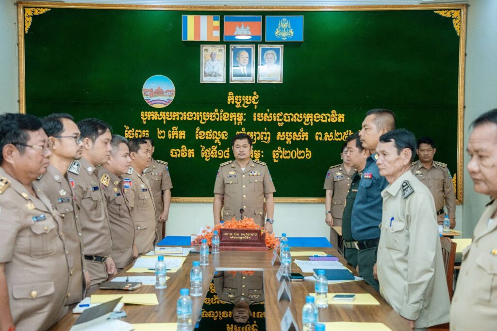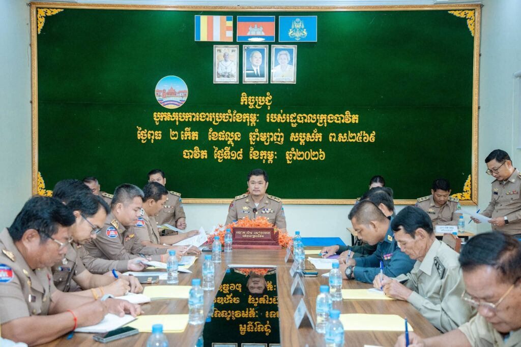 ខេត្តស្វាយរៀង:នាព្រឹកថ្ងៃទី១៨ ខែកុម្ភៈ ឆ្នាំ២០២៦ រដ្ឋបាលក្រុងបាវិត មានរៀបចំកិច្ចប្រជុំបូកសរុបការងារប្រចាំខែកុម្ភៈ និងលើកទិសដៅបន្តខែមីនា ឆ្នាំ២០២៦ របស់រដ្ឋបាលក្រុងបាវិត ប្រព្រឹត្តទៅក្រោមអធិបតីភាព លោក លឹម សៀងហេង អភិបាល នៃគណៈអភិបាលក្រុងបាវិត។ កិច្ចប្រជុំនេះ ដោយមានការអញ្ជើញចូលរួមពី លោក លោស្រី អភិបាលរងក្រុង លោកនាយក នាយករងរដ្ឋបាល លោក លោកស្រី ប្រធានការិយាល័យចំណុះក្រុង លោកប្រធានសាខាអគ្គិសនីបាវិត កងកម្លាំងប្រដាប់អាវុធទាំងបីក្រុង លោកចៅសង្កាត់ និងស្មៀនទាំងប្រាំក្នុងក្រុង។