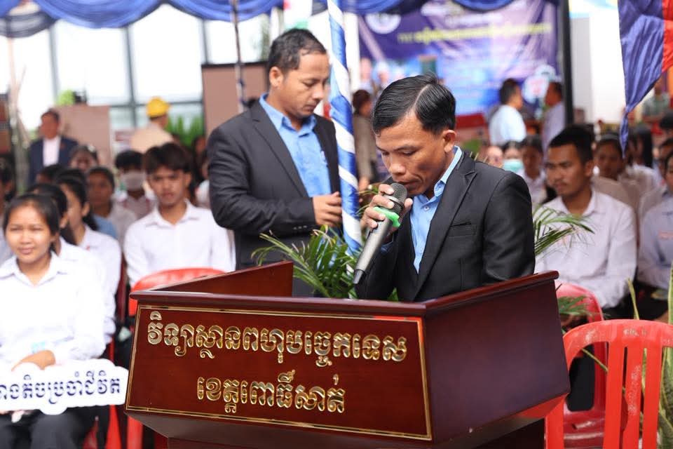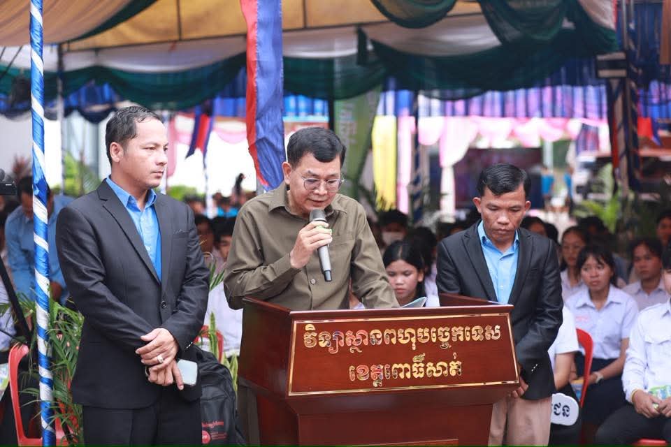 ខេត្តពោធិ៍សាត់:ឯកឧត្តម ខូយ រីដា អភិបាល នៃគណៈអភិបាលខេត្ត និងជាប្រធាន គណៈកម្មាធិការបណ្តុះបណ្តាលខេត្ត(PTB) ព្រឹកថ្ងៃទី១៥ ខែមិថុនា ឆ្នាំ២០២៥ បានអញ្ជើញជាគណៈអធិបតី ក្នុងទិវាជាតិអប់រំបណ្តុះបណ្តាលបច្ចេកទេស និងវិជ្ជាជីវៈលើកទី៨ ឆ្នាំ២០២៥ ក្រោមប្រធានបទ “ការអប់រំបណ្តុះបណ្តាលបច្ចេកទេសនិងវិជ្ជាជីវៈ (TVET) បង្កើតឱកាស ការងារ សាងក្តីសង្ឃឹមដល់យុវជន” នៅបរិវេណវិទ្យាស្ថានពហុបច្ចេកទេសខេត្តពោធិ៍សាត់។